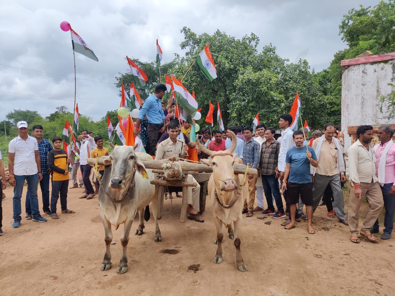 बैलगाड़ी और बैंड बाजा लेकर पहुंचे एसडीओपी गांव, कर रहे हैं हर घर तिरंगे अभियान के तहत जागरूक .